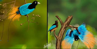 This is one of the smaller birds of paradise which is alone one that is most colorful as well. The females have violet-black, red, and blue on their plumage. Then the males are brownish colored and have a blue sparkle on their crowns.